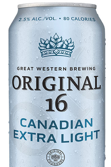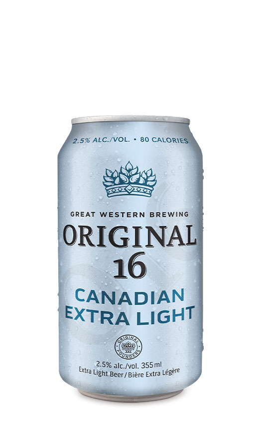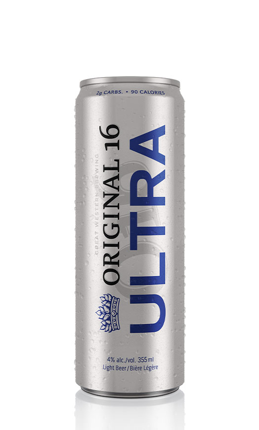 Original 16 Ultra has only 2 grams of carbs and 90 calories per 355ml can. A premium light beer brewed in Western Canada, at 4% alc./vol.. It’s a light, easy-drinking beer with a clean, crisp finish. A lighter option without compromising quality or refreshment.